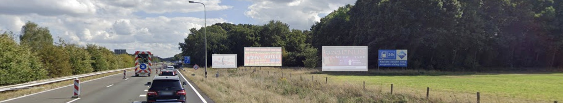 A12 vlak voor de grens bij Duitsland. Dagelijks rijden er meer dan 35.000 mensen voorbij deze borden. En tijdens de vakantieperiode het dubbele....